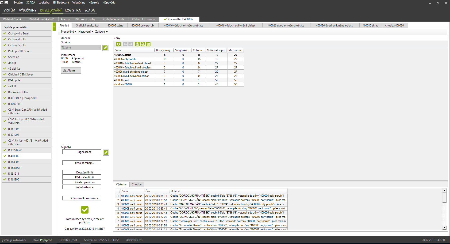 - Na základě detekce jednotlivých signálů identifikačních tagů, které mají pracovníci na opasku, je určena zóna, kde se identifikační tag nachází.